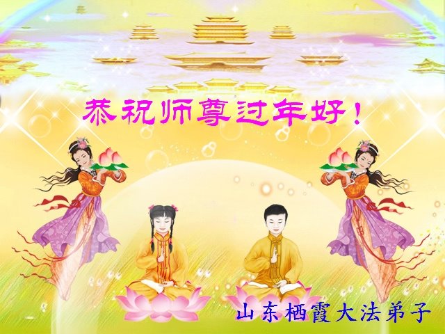 山东栖霞一家三弟子感谢师父慈悲苦度,恭祝师父过年好! 山东省郓城大法弟子恭祝师尊新年快乐!