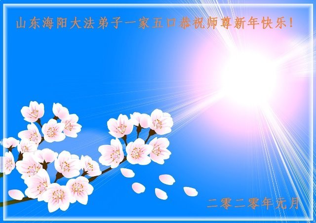 感恩师尊慈悲苦度,海阳全体大法弟子恭祝师尊新年快乐! 山东省烟台市海阳市大法弟子一家五口恭祝师尊新年快乐!