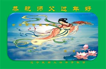 恭祝慈悲伟大的师尊新年快乐!感谢师尊救度之恩!在新的一年里,我们要更加精進,按照师父要求做好三件事,跟师父回家。 辽宁省营口市盖州市全体大法弟子恭祝师尊过年好!
