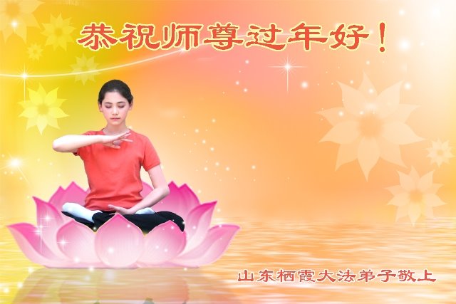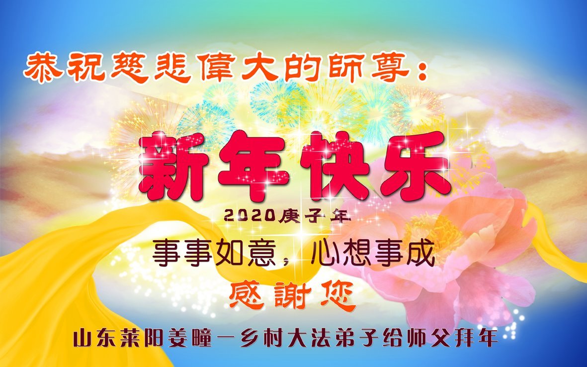 山东省烟台市莱阳市姜疃镇一乡村大法弟子给师父拜年!