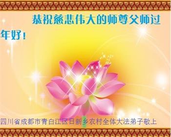 四川省成都市青白江区姚渡乡农村全体大法弟子敬上 山东淄博市淄川区农村大法弟子向慈悲伟大的师尊拜年!恭祝师尊新年愉快!