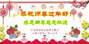 恭祝师父过年好! 大陆四川德阳市绵竹市大法弟子 四川省广元市全体大法弟子给慈悲伟大的师尊拜年!