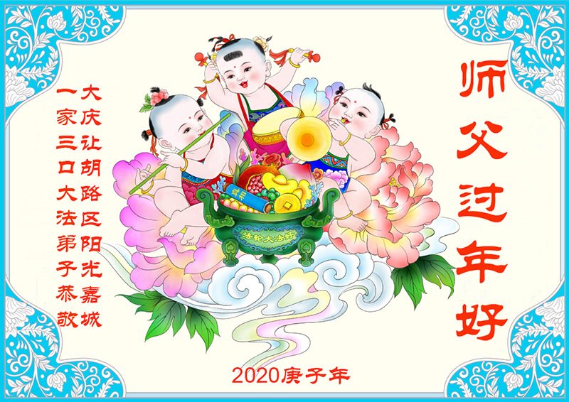 【明慧网二零二零年一月二十四日】 黑龙江大庆新村六区一学法小组大法弟子恭祝师父新年好!