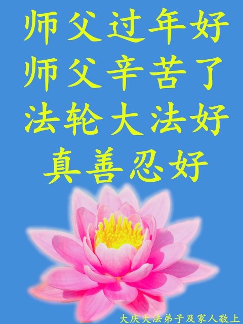 年年岁岁,岁岁年年,转眼间新年又要到了,感谢师尊的慈悲苦度!弟子们在这里给您磕头拜年了!日日月月,月月日日,师尊守护在我们身旁,看护着我们,点化着我们,我们每天沐浴在大法中,形式虽然险恶,可我们心中有师有法,我们会一如既往,做好三件事,完成史前大愿,跟师父回家! 黑龙江省大庆大法弟子及家人恭祝师尊过年好!
