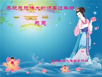 感谢师尊救度之恩!在新的一年里,弟子一定做好三件事,绝不负师尊的厚望!弟子跪拜师尊! 辽宁省大连市普兰店区一老年女大法弟子恭祝师尊过年好!