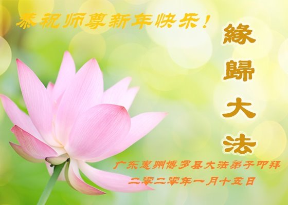 广东惠州全体大法弟子叩拜 二零二零年一月十五日 广东省惠州市博罗县大法弟子恭祝慈悲伟大的师尊新年快乐!