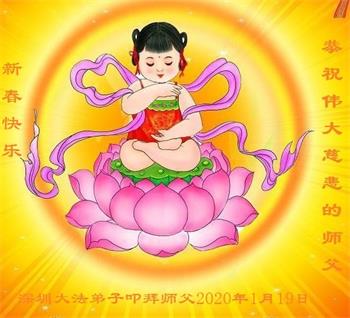 师尊您好!值此庚子新年来临之际,弟子叩拜感恩师尊无量慈悲! 弟子沐浴浩荡师恩二十余载,得以荡涤尘垢,洗净灵魂。弟子一定谨记师尊教诲、勇猛精進于通天之途。 弟子再次叩首 广东省梅州市兴宁一中年女大法弟子恭祝慈悲伟大的师父过年好!