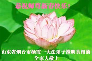 山东省烟台市栖霞一大法弟子携明真相的全家人恭祝慈悲伟大的师尊新春快乐!