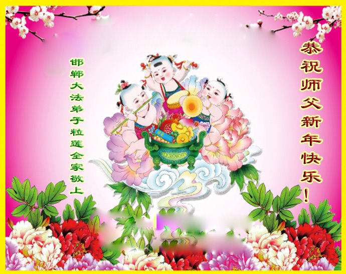 河北省邯郸一大法弟子全家恭祝慈悲伟大的师父新年快乐!