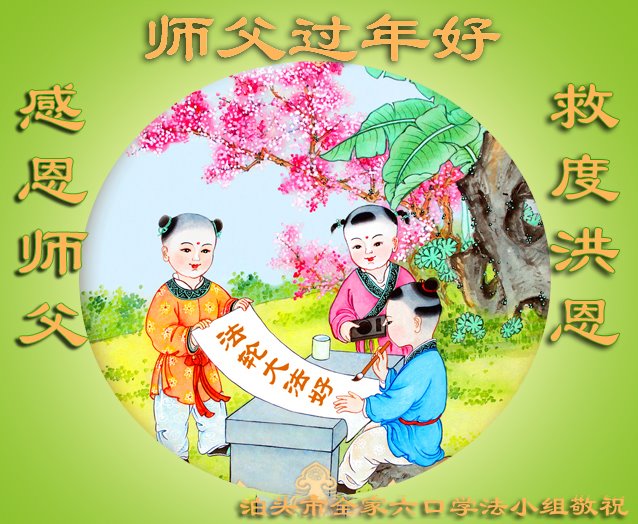 河北省沧州市东光县一家7个大法弟子给师父拜年,祝慈悲伟大的师尊新年快乐!