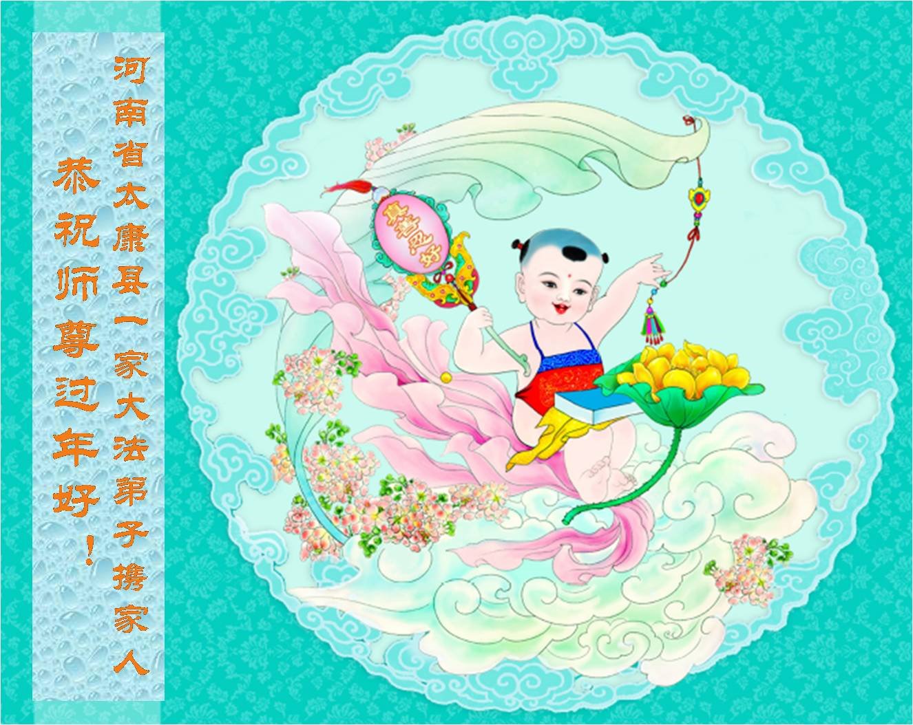 河南安阳大法弟子恭祝师尊过年好! 河南省周口市太康县一家大法弟子携家人恭祝师尊过年好!