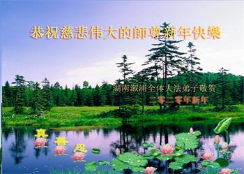 师尊您好!又到了辞旧迎新的新年佳节,我们溆浦全体大法弟子想念您,一年又一年,您为弟子们操尽了心,我们感恩您,在您的慈悲保护下,我们全体大法弟子平稳的做着三件事,虽然其中不乏坎坷与荆棘,但我们都勇敢、坚定的走了过来。在以后的日子里,我们一定要更加努力的做好三件事,不负师望。在此,让我们再一次道一声:师尊,您辛苦了,祝你新年快乐! 湖南科技大法弟子恭祝慈悲伟大的师尊过年好!