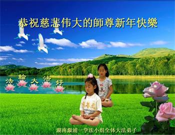 湖南省湘潭一学法小组大法弟子恭祝师尊新年快乐!