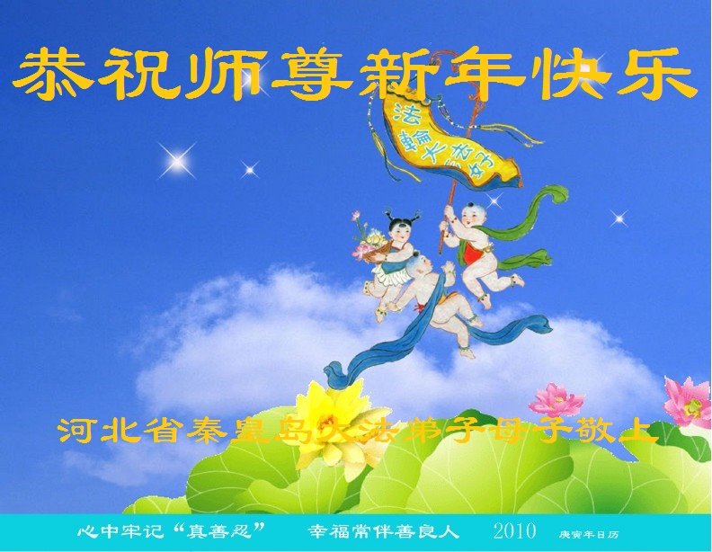 秦皇岛一学法小组8人恭祝师父新年好! 河北省秦皇岛大法弟子母子恭祝伟大的师尊新年好!