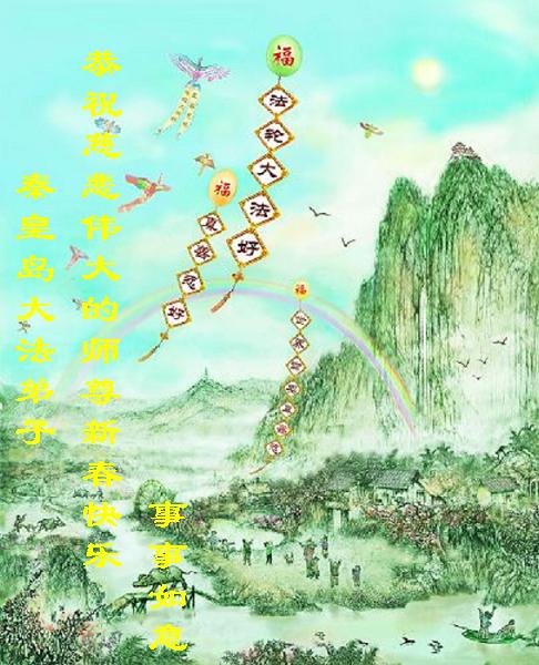 恭祝慈悲伟大的师尊新年快乐!师父过年好! 河北省秦皇岛大法弟子全家祝师父新年快乐!