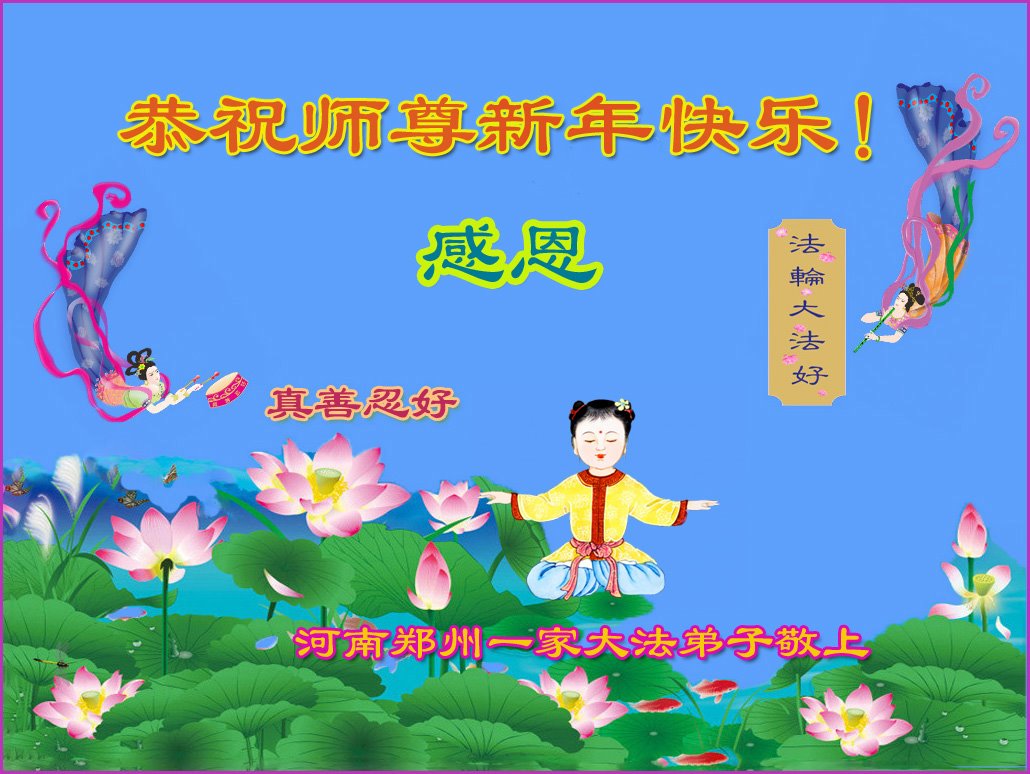 河南郑州一家大法弟子恭祝师尊新年快乐!
