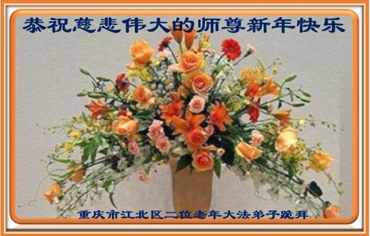 重庆市江北区二位老年大法弟子给师尊拜年!恭祝慈悲伟大的师尊新年快乐! 重庆市江北区全体大法弟子恭祝慈悲伟大的师尊过年好!