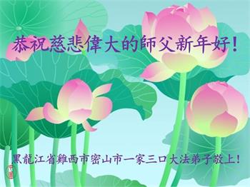 黑龙江省鸡西市密山市一家三口大法弟子恭祝慈悲伟大的师父新年好!