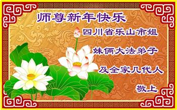 四川省乐山市全体大法弟子敬上 2020年1月21日 四川省乐山市姐妹俩大法弟子及全家几代人恭祝伟大的师尊新年快乐!
