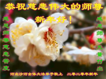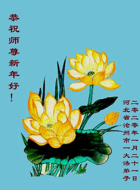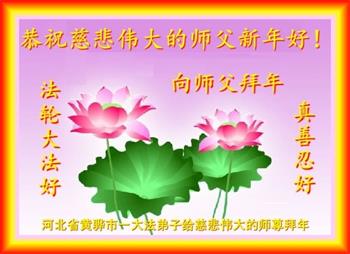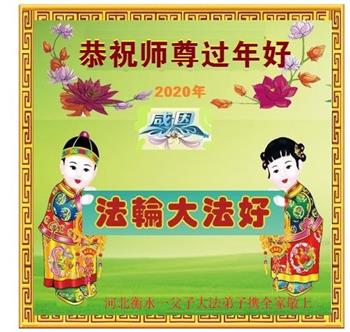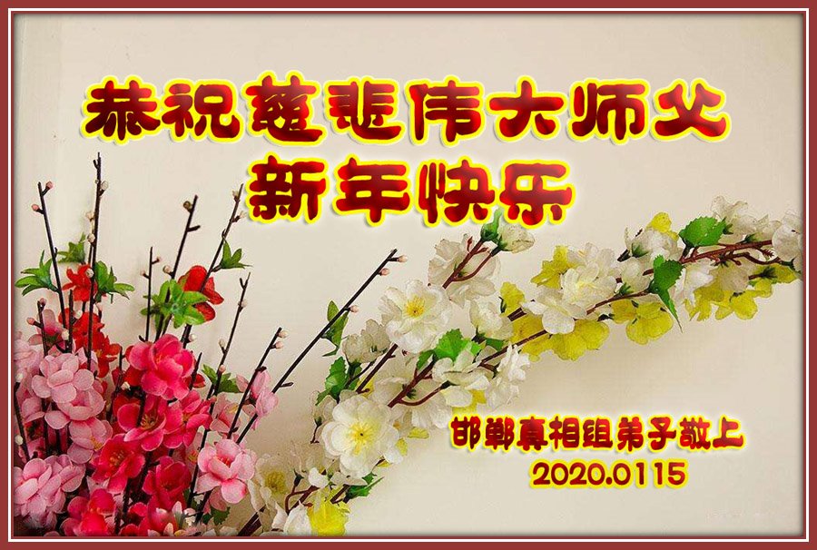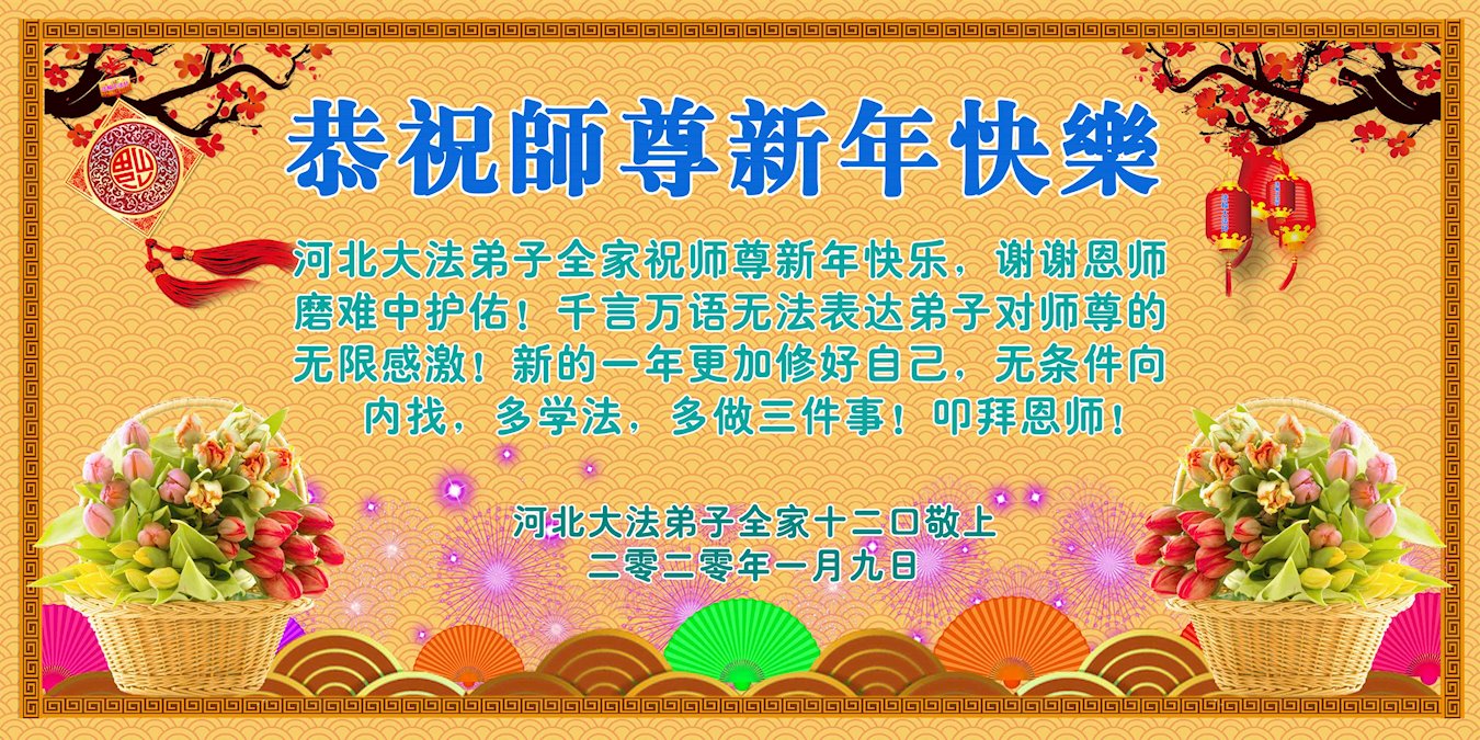 恭祝师尊新年快乐! 谢谢恩师魔难中对我们的护佑!千言万语无法表达弟子对师尊的无限感激! 在新的一年里,要更加修好自己,无条件向内找,多学法,多做三件事。 河北大法弟子全家十二口人敬上 二零二零年一月九日 河北邯郸真相组全体大法弟子恭祝慈悲伟大师尊新年快乐!
