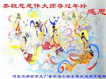 【明慧网二零二零年一月二十四日】 河北省廊坊市大厂县学法小组全体大法弟子恭祝师尊过年好!