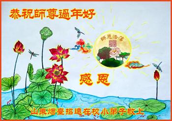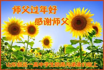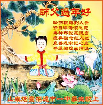 感恩师父的慈悲救度,感谢师父一路保护。 山东烟台招远市一中学生祝师父过年好!