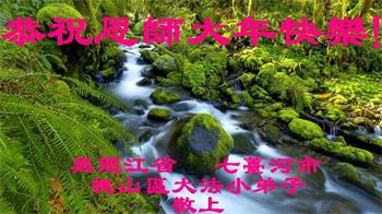 在新的一年里,我会多学法,多炼功,多向内找,做到实修,请师尊放心! 再次恭祝师尊新年快乐! 河北省唐山市玉田县一大法小弟子恭祝师父过年好!
