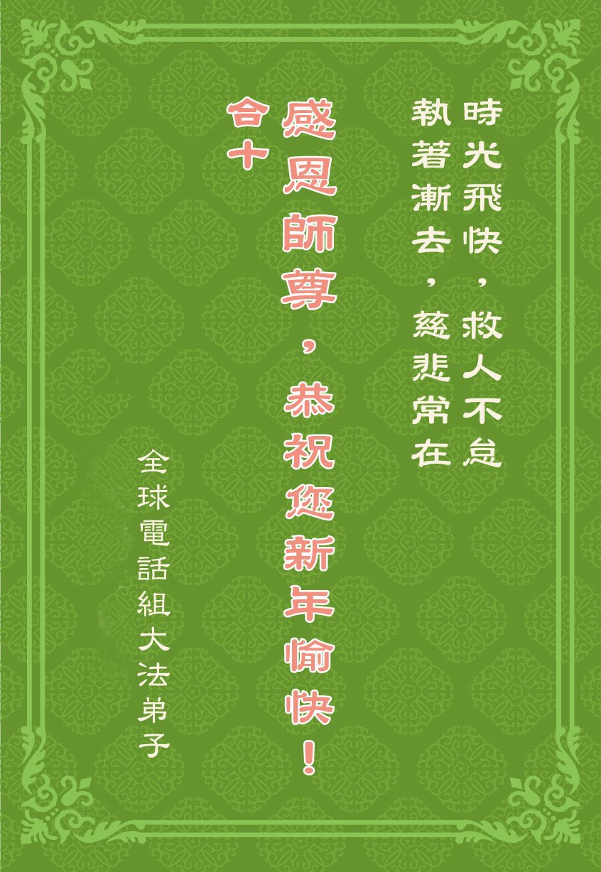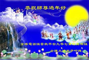 全球电话组营救平台九零七重点真相组全体大法弟子恭祝师尊过年好!