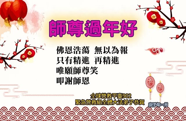 全球营救平台902紧急营救组全体大法弟子恭祝师尊过年好!
