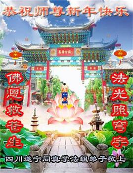 恭祝师尊新年快乐! 万古天门师尊开启 浅白语言讲明法理 展现神奇慈悲呼唤 返本归真揭示天机 人心向善淡泊名利 祛病健身效果神奇 家庭和睦幸福美满 天赐洪福吉祥如意 四川乐山市全体大法弟子恭祝慈悲的师父新年快乐!