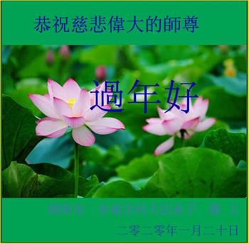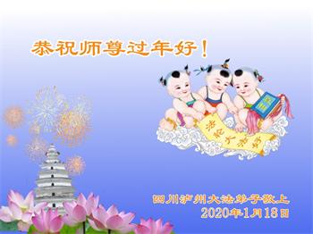 恭祝慈悲伟大的师尊——过年好! 在慈悲恩师的教导下,在同修的帮助下,我们一定奋起直追,勇猛精進,不辜负师尊的期待和众生的期盼。 谢谢师尊! 四川绵阳市和德阳市几位大法弟子及家人 敬上 二零二零年一月二十日 四川遂宁同真学法组大法弟子恭祝师尊新年快乐!