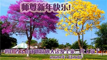 四川省乐山市姐妹俩大法弟子及全家三代人恭祝师尊新年快乐!
