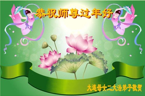新年来到之际,我们学法小组向慈悲伟大的师尊敬上诚挚的祝愿:师父新年快乐!在新的一年,弟子们会谨遵师父的教诲,遇事向内找,学好法修好自己,做好三件事,多救人。 辽宁省大连母女俩大法弟子恭祝师尊过年好!