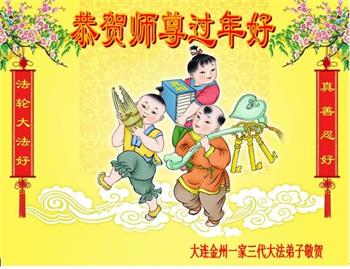 辽宁省大连市甘井子区一大法弟子及亲属全家齐声恭祝师尊过年好!