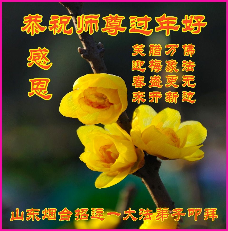 弟子给师父拜年!师父过年好! 佛法无边 万象更新 腊梅盛开 笑迎春来 山东烟台招远一大法弟子叩拜 山东省烟台招远市一大法弟子恭祝慈悲伟大的师尊过年好!