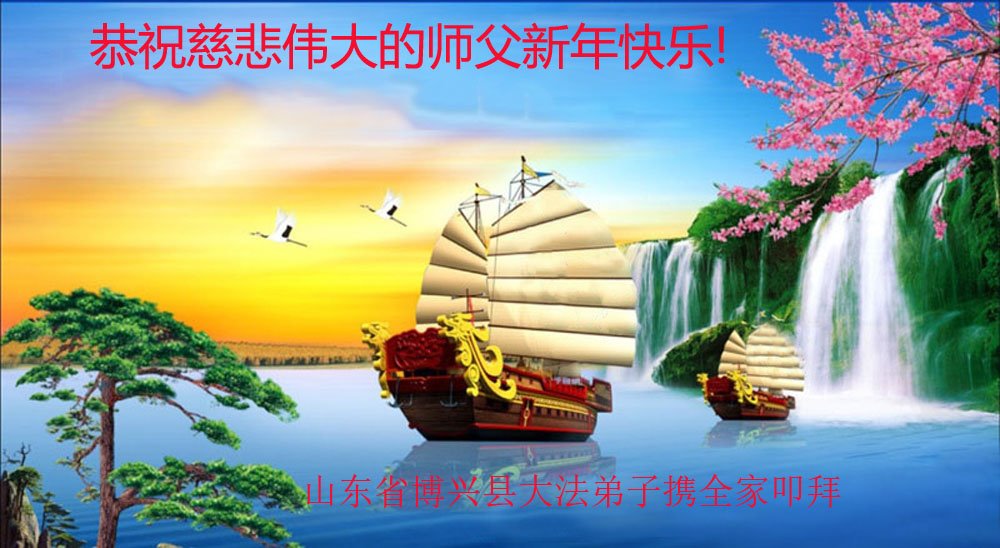 山东省滨州市博兴县一大法弟子携全家恭祝慈悲伟大的师父新年快乐!