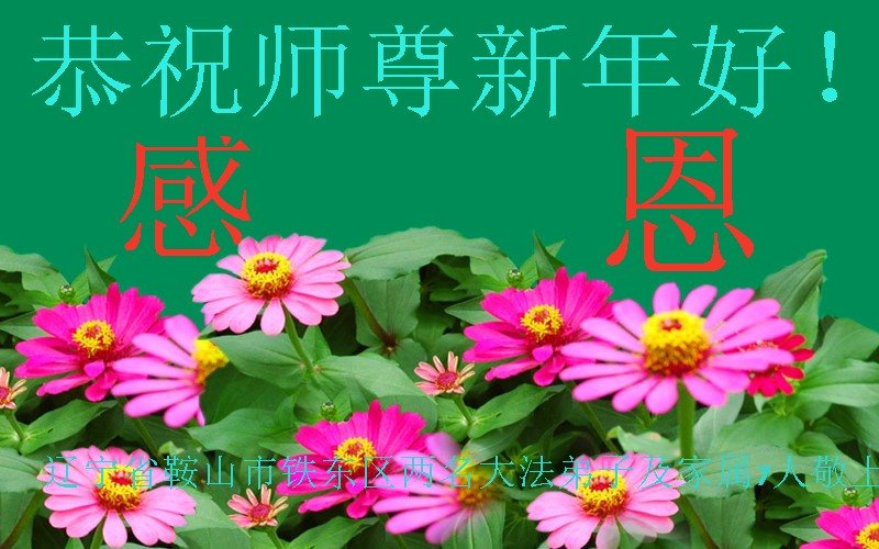 感恩师尊慈悲救度弟子,弟子一定听师尊的话,修好自己,遇事找自己,做好三件事,兑现史前誓约,做个合格的大法弟子。 辽宁鞍山市铁东区全体大法弟子给师尊拜年! 辽宁省抚顺大法弟子祝师尊新年快乐!