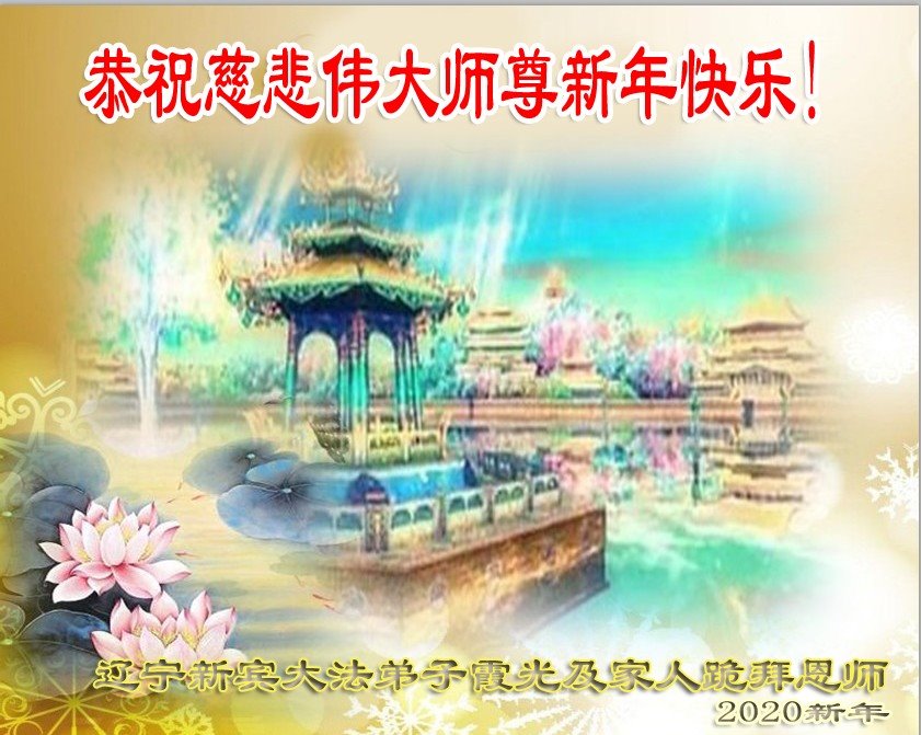 时间飞快的向前推進,2020年即到,回想师尊的慈悲救度,常常泪流满面,心潮澎湃。 感恩师尊!感谢师尊从地狱中把我捞起洗净!感谢师尊对弟子修炼每一步的保护!感谢师尊叫我按“真、善、忍”做一个好人! 在此我和我的家人恭祝师尊过年好! 二零二零年一月十七日 辽宁省鞍山市水源一大法弟子恭祝师尊过年好!