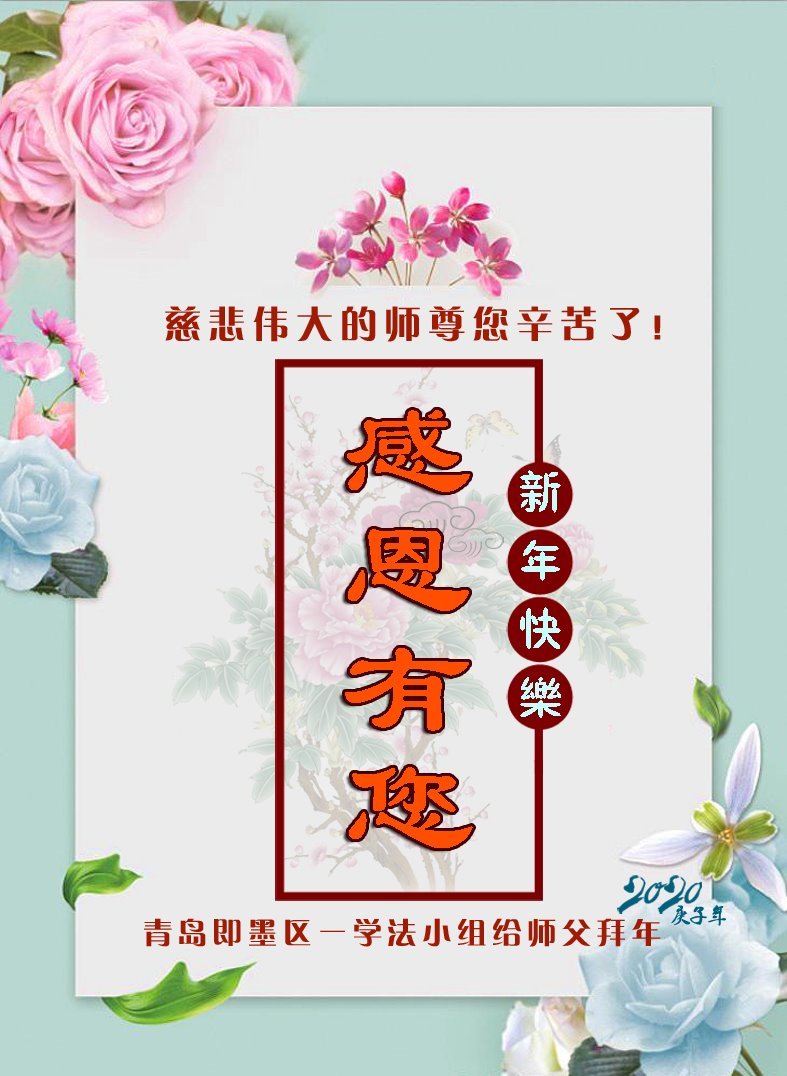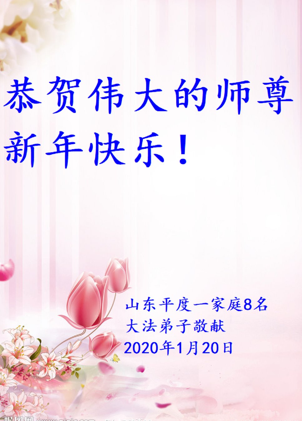 【明慧网二零二零年一月二十五日】 山东青岛平度全体大法弟子恭祝慈悲伟大的师尊新年快乐!