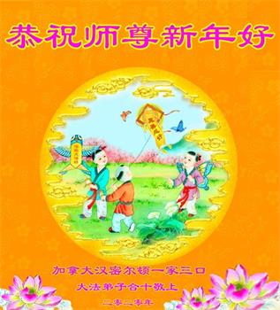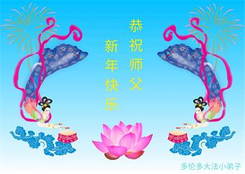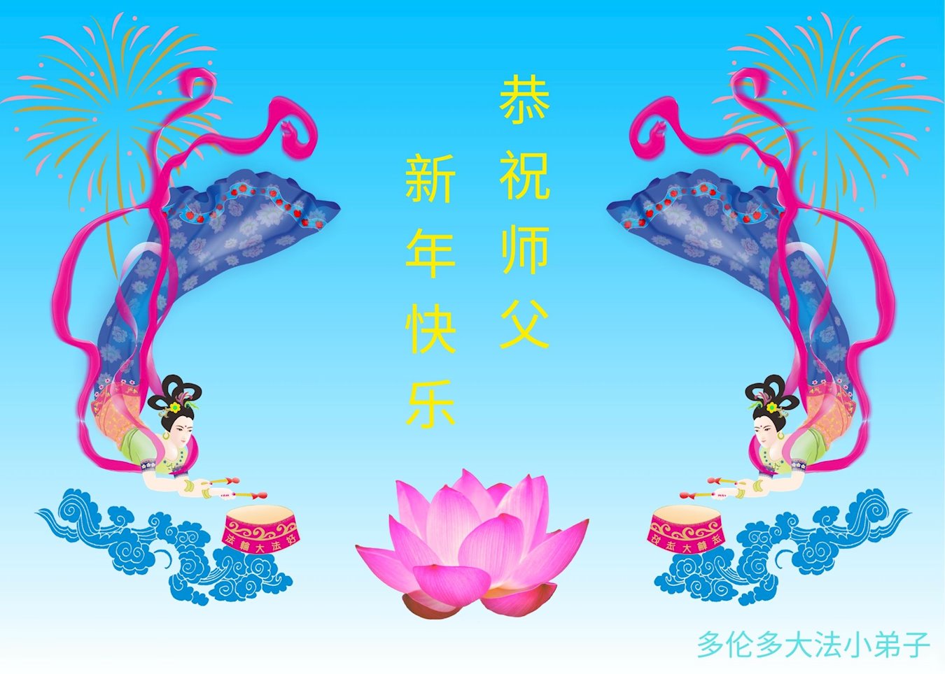 师父新年快乐! 弟子感恩师尊慈悲苦度! 叩谢师恩! 多伦多大法弟子及家人敬上 加拿大多伦多大法小弟子恭祝师父新年快乐!