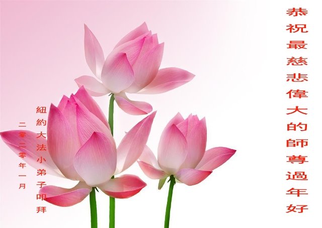 弟子的生命是师父多次延续来的。师父救弟子出地狱,亦使无量众生得度。佛恩浩荡! 弟子唯有惜其缘,修自己,证实法,履使命,救众生,得圆满,随师还! 纽约大法弟子三人及家人恭祝师父新年快乐!