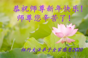 恭祝慈悲伟大的师父新年好! 正法即将進入第二十一个年头了,在这证实法修炼的日子里,师父一直慈悲保护着我们,对师父的感恩无法用语言表达,唯有精進再精進,多学法,学好法,多救人,兑现誓约。请师父放心! 美国纽约大法弟子叩拜! 2020年1月13日 希望.之声纽约大法弟子恭祝师尊新年快乐!