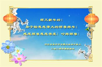 师父您好!师父辛苦了! 走过二十年的修炼路程,弟子无限的感恩师父的慈悲苦度。 河北省保定市阜平县一大法弟子恭祝慈悲伟大的师尊新年好!