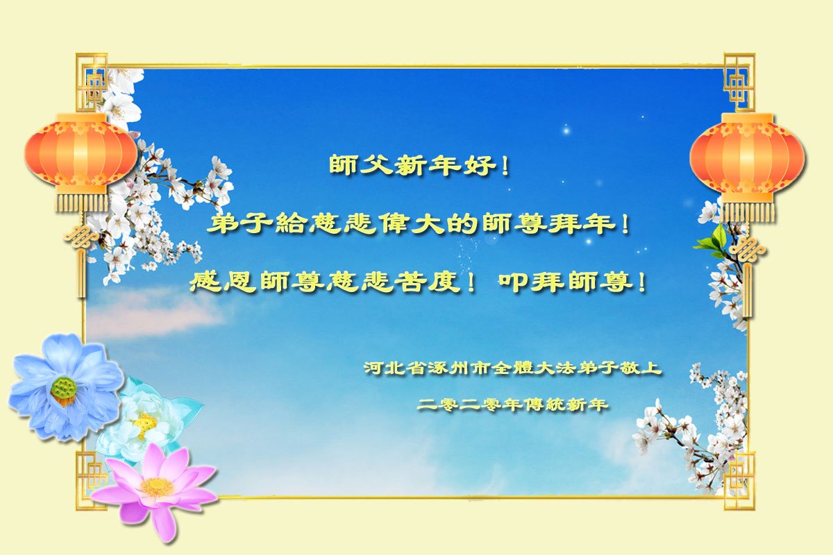 感谢师尊慈悲苦度!叩拜师尊! 河北省保定市定兴县全体大法弟子恭祝师尊新年快乐!