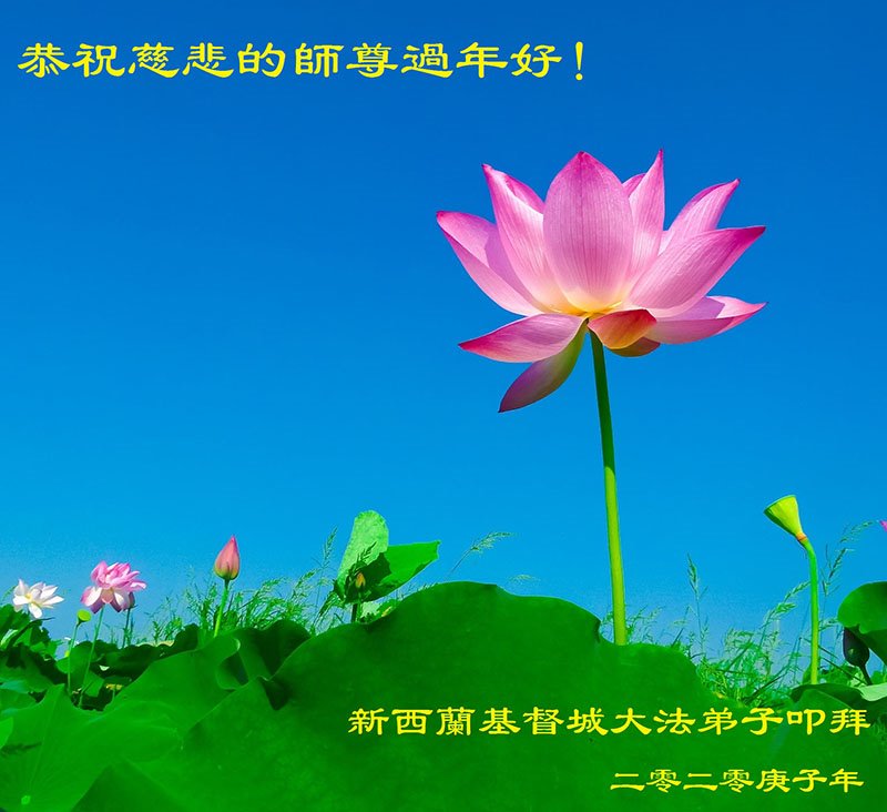 新西兰基督城大法弟子恭祝慈悲伟大的师尊过年好!弟子叩拜师尊!