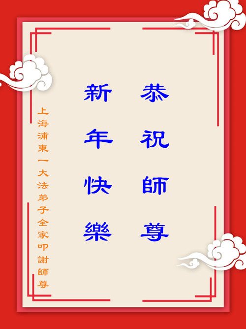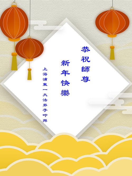 中国传统新年将至,在此我和一老年大法弟子恭祝师尊新年快乐!感恩师尊慈悲救度!修炼中多有不足和懈怠,然深知使命在身,责任重大,唯有学好法,做好三件事,才不负今世生而为人幸得大法之荣耀。 上海青年大法弟子恭祝师尊新年快乐!