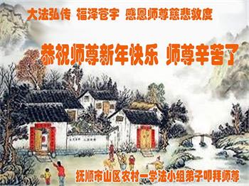 【明慧网二零二零年一月二十五日】 辽宁省抚顺山区农村一学法小组大法弟子恭祝师尊新年快乐!叩拜师尊!