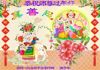 【明慧网二零二零年一月二十五日】 云南嵩明一大法弟子全家恭祝师尊过年好!
