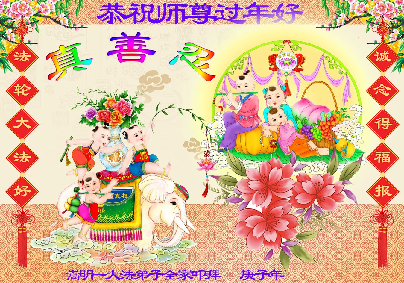 云南昆明市大法弟子一家恭祝慈悲伟大的师尊过年好!