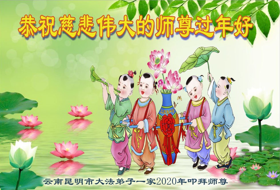 云南昆明大法弟子五人恭祝师尊黄历新年快乐! 云南大法弟子恭祝伟大慈悲的师尊庚子年过年好!